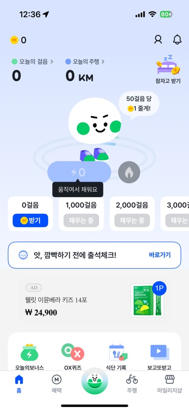 또한, 마일리지 적립에는 조건이 있으며, 예컨대 앱 접속 시 걸음수가 반영되는 방식이므로 사용자가 **앱을 열어야만 데이터가 인식되는 경우**도 있습니다.